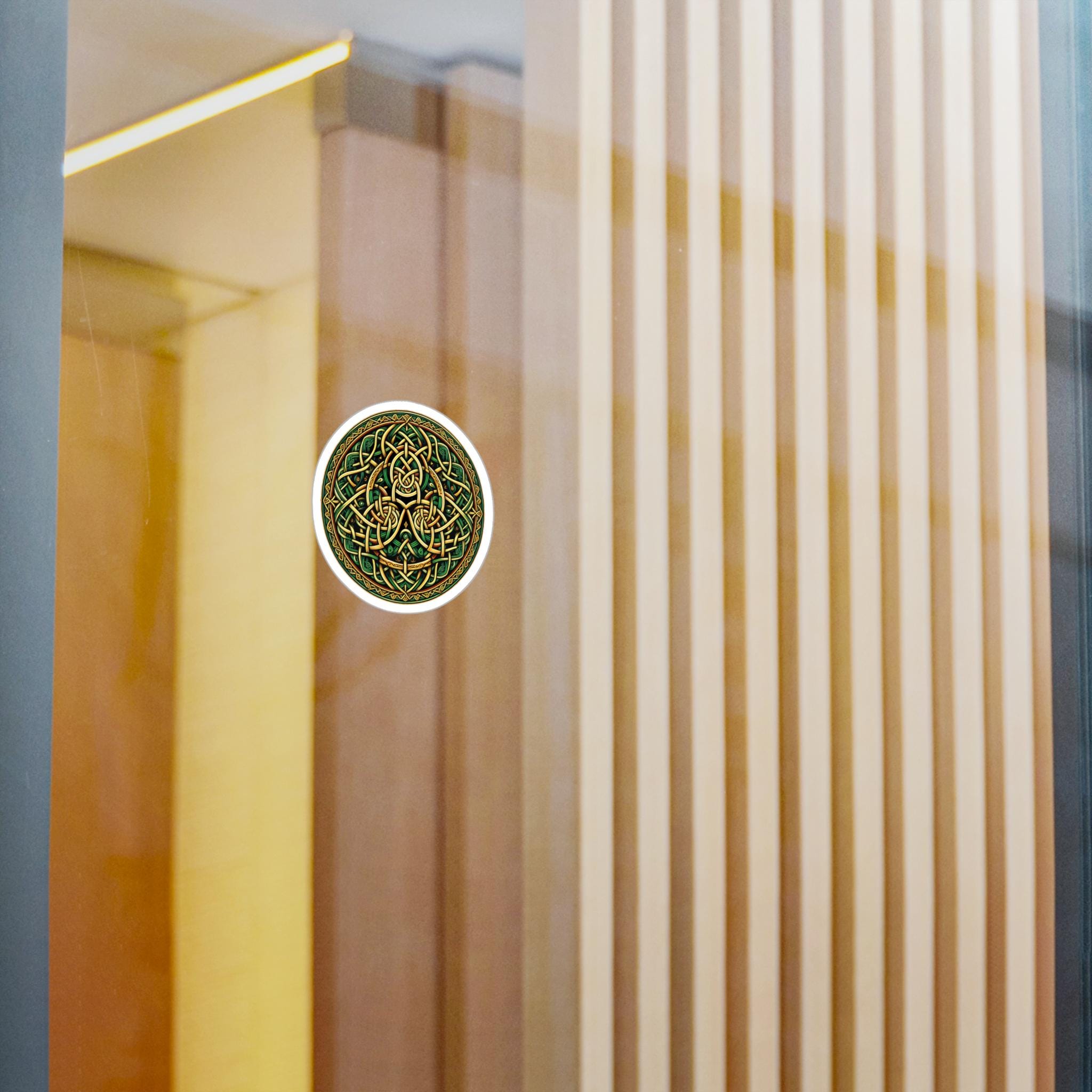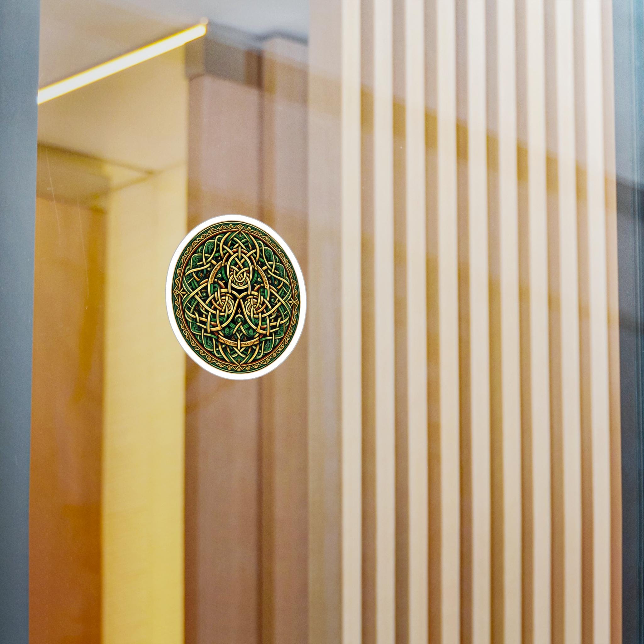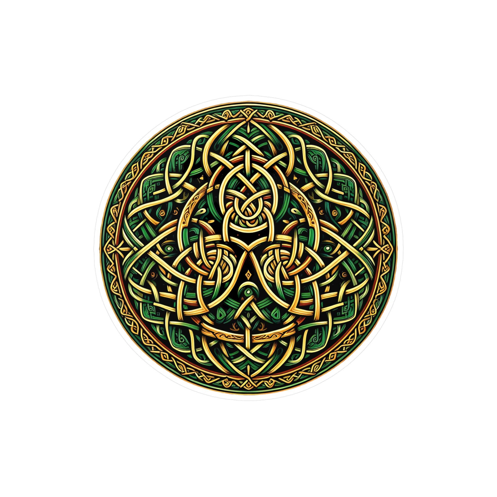 Celebrate your Celtic heritage wherever you may travel with this original Celtic knot design! This beautiful design features stunning Celtic knotwork in the colors of the Emerald Isle, green and gold, guaranteed to draw attention. This eye-catching decal is made with high-quality white vinyl and is water, scratch, and UV-resistant. With a removable adhesive that doesn't leave residue, this decal features a 1/8" kiss-cut border around the sticker and a satin finish. Choose between four sizes and proudly display your love of Celtic artistry and your Irish heritage!