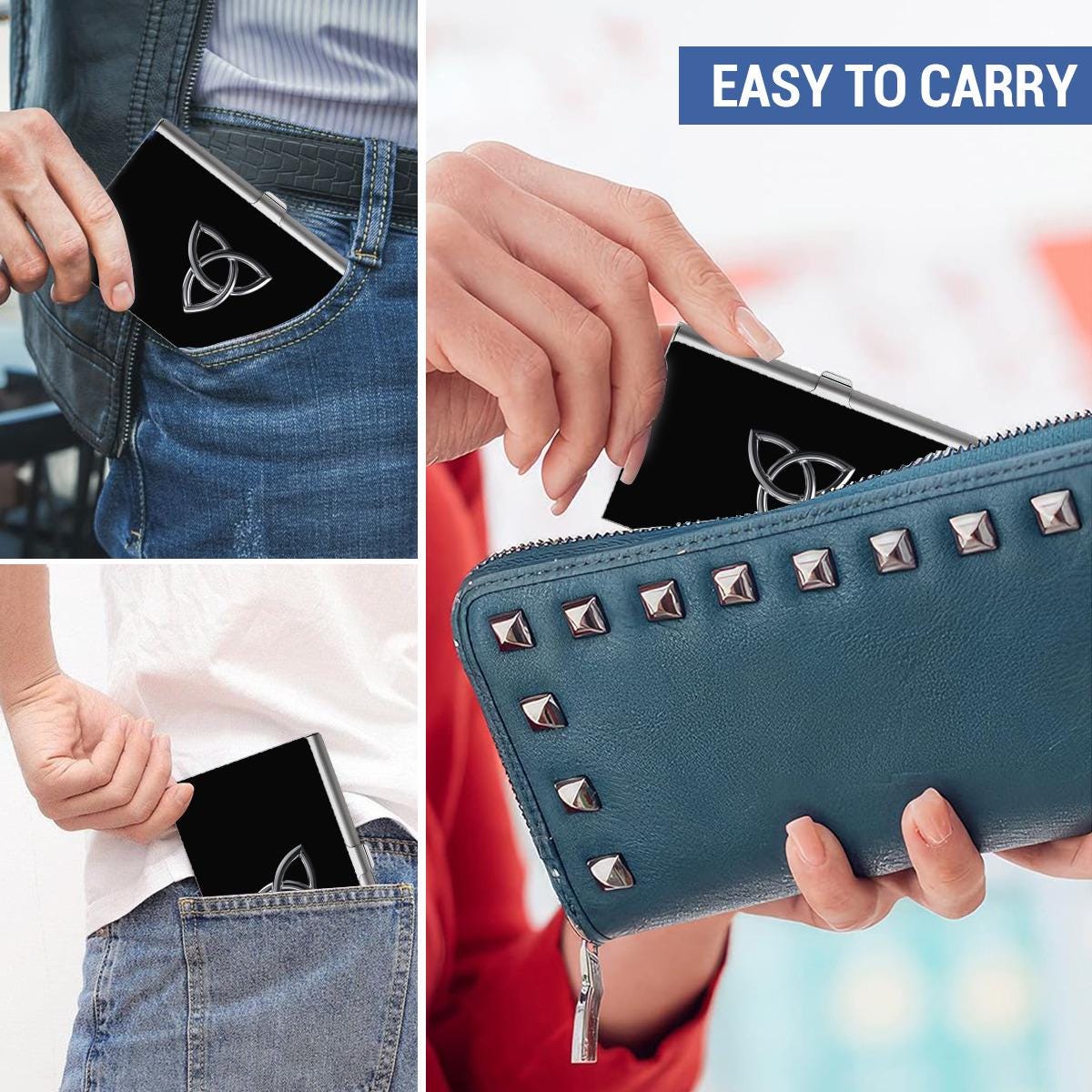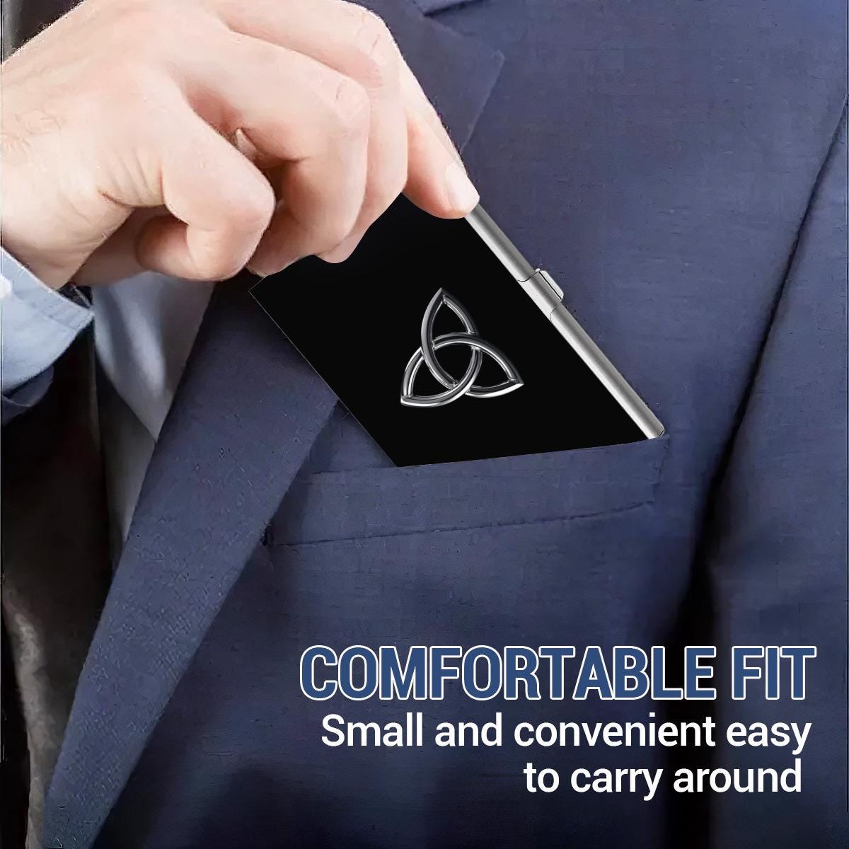 Carry the beauty of Celtic artistry wherever you go with our Silver Triquetra Knot Business Card Case! Featuring the timeless Triquetra Knot in elegant silver against a sleek black background, this piece combines symbolism, heritage, and professionalism in one stunning design.
