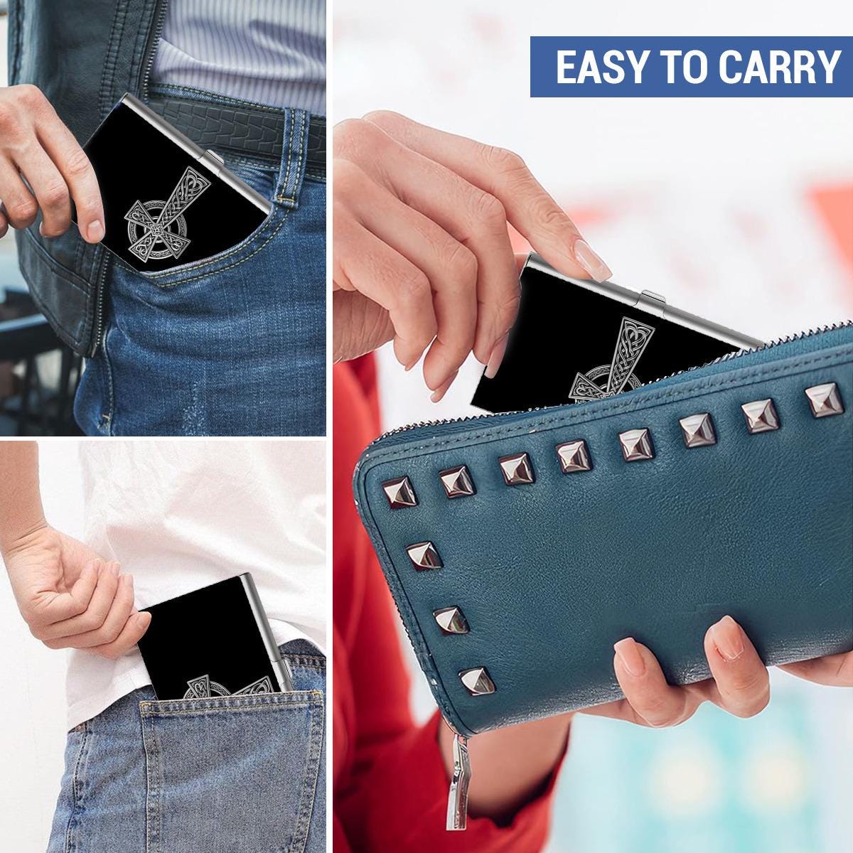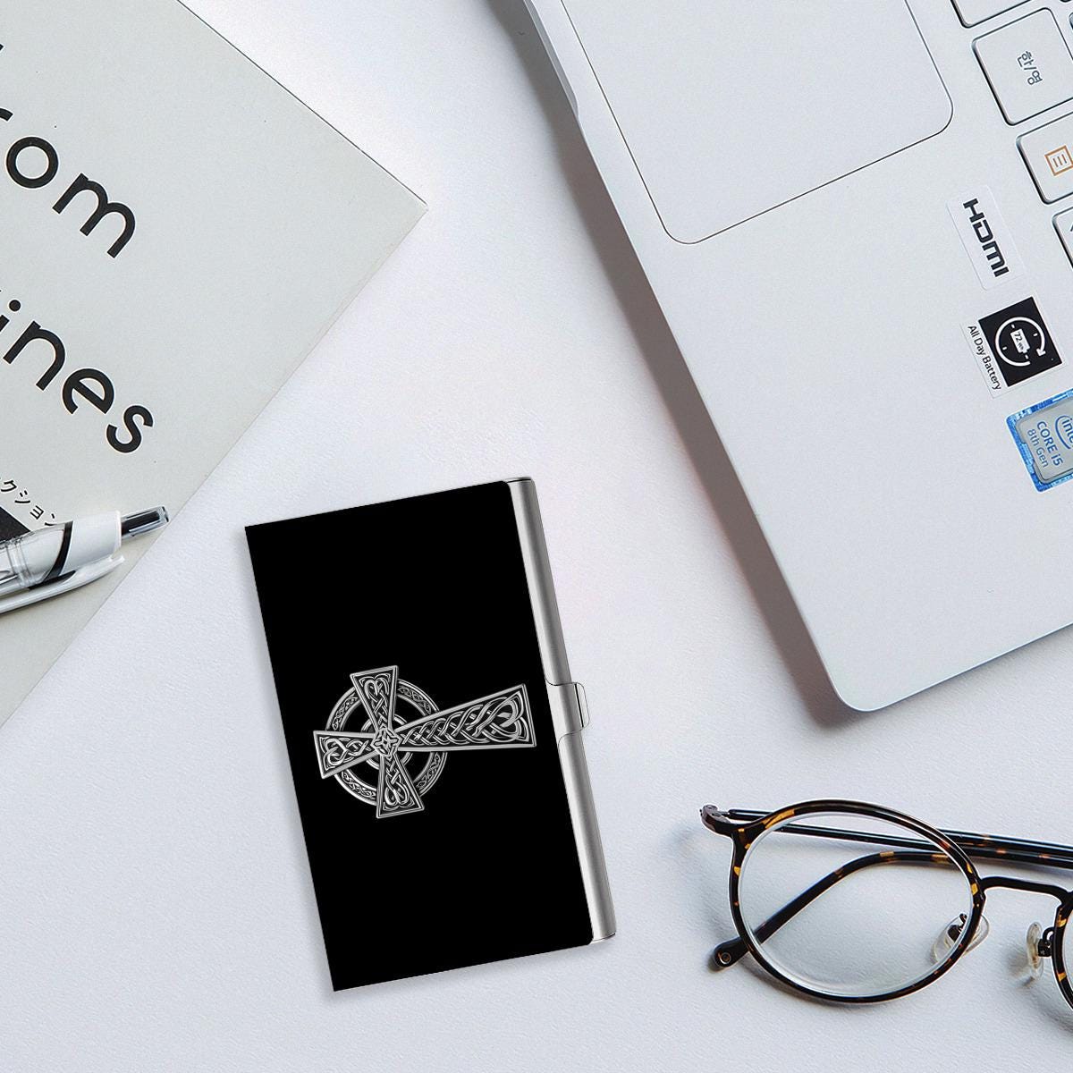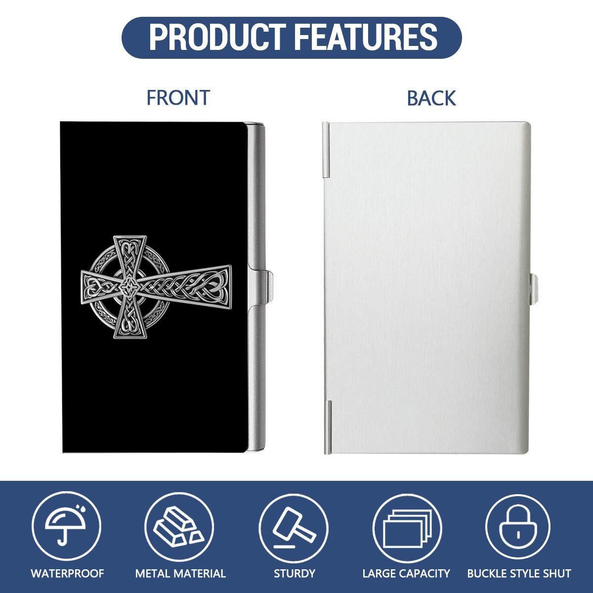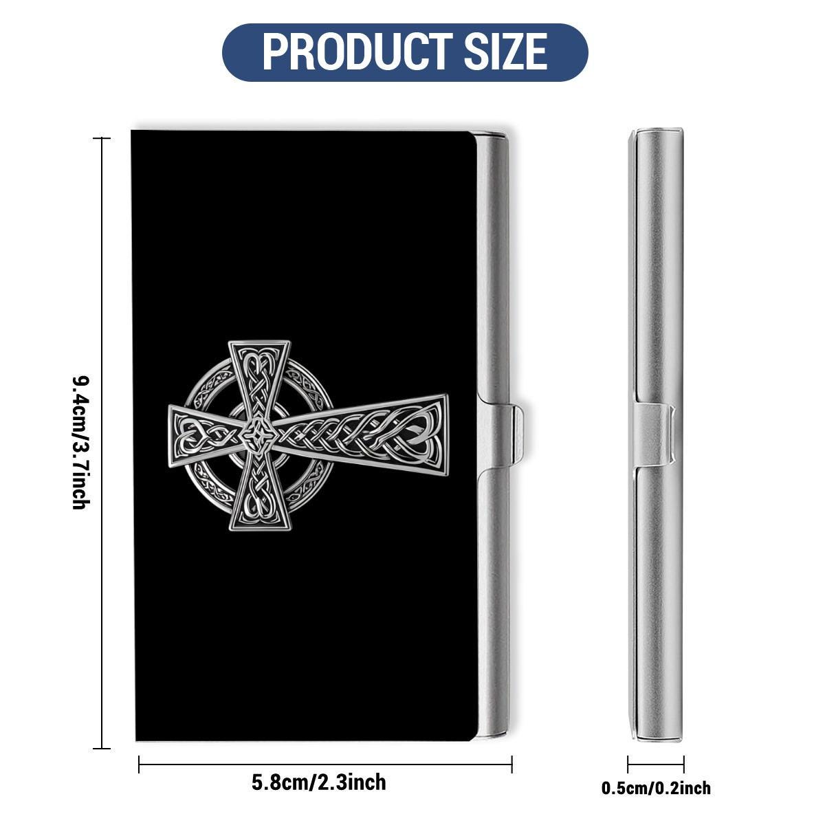 Carry the beauty of Ireland and the spirit of Celtic artistry wherever you go with our Silver Celtic Cross Business Card Case! Featuring a striking Celtic Cross in elegant silver against a sleek black background, this piece blends symbolism, heritage, and sophistication in one timeless design.