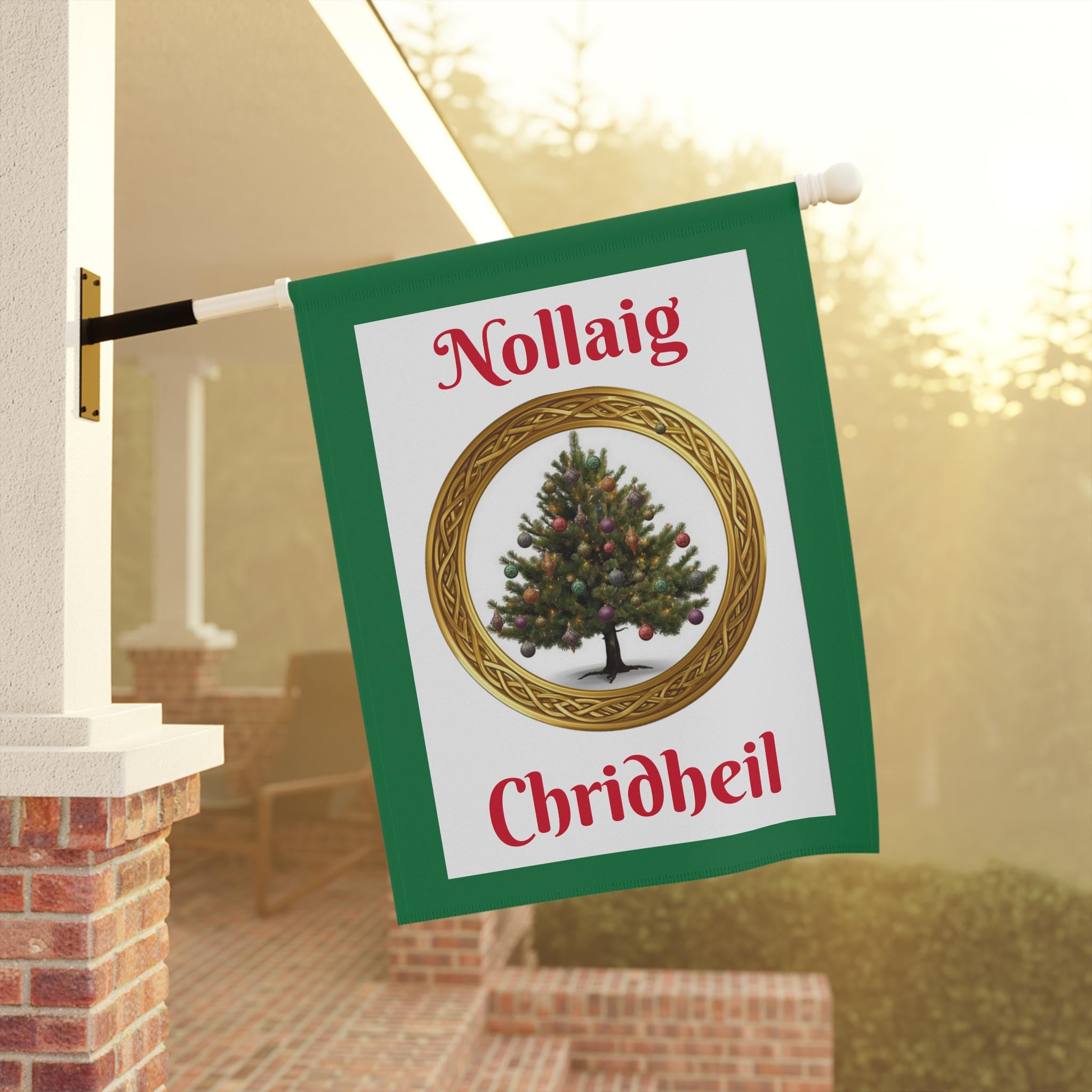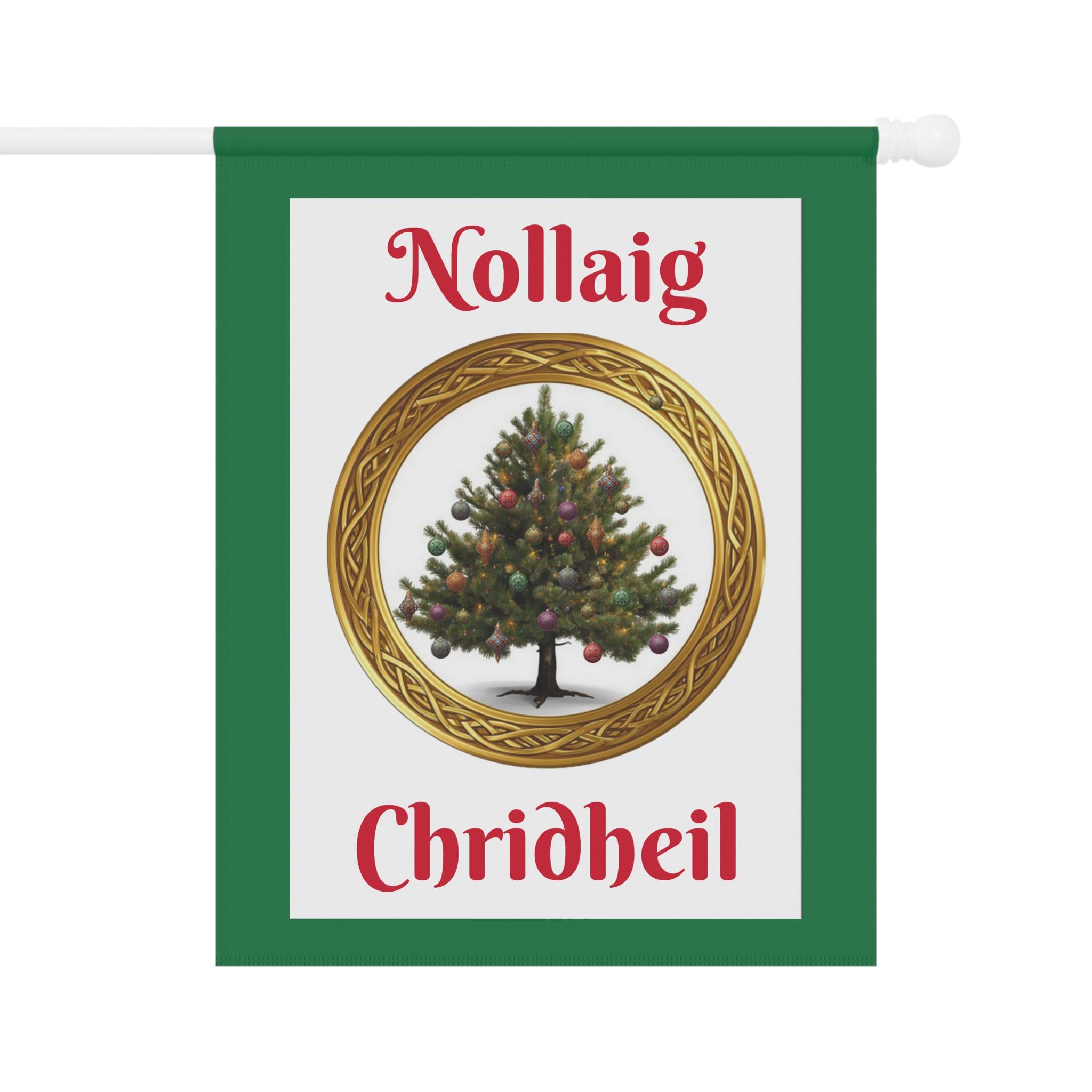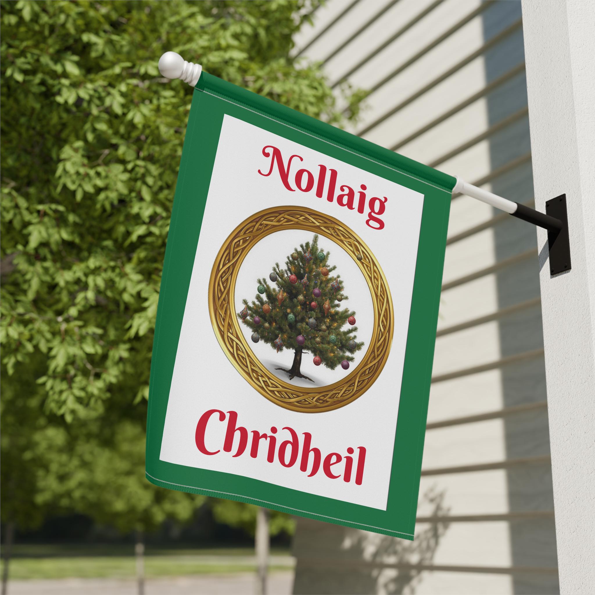 Bring a touch of Celtic magic to your home this Christmas with our Scottish Christmas Garden Flags! Available in English, Irish, Scottish, and Welsh, and in two sizes (12'' × 18'' and 24.5'' × 32''), each flag showcases a gold Celtic circle set against a crisp white background.