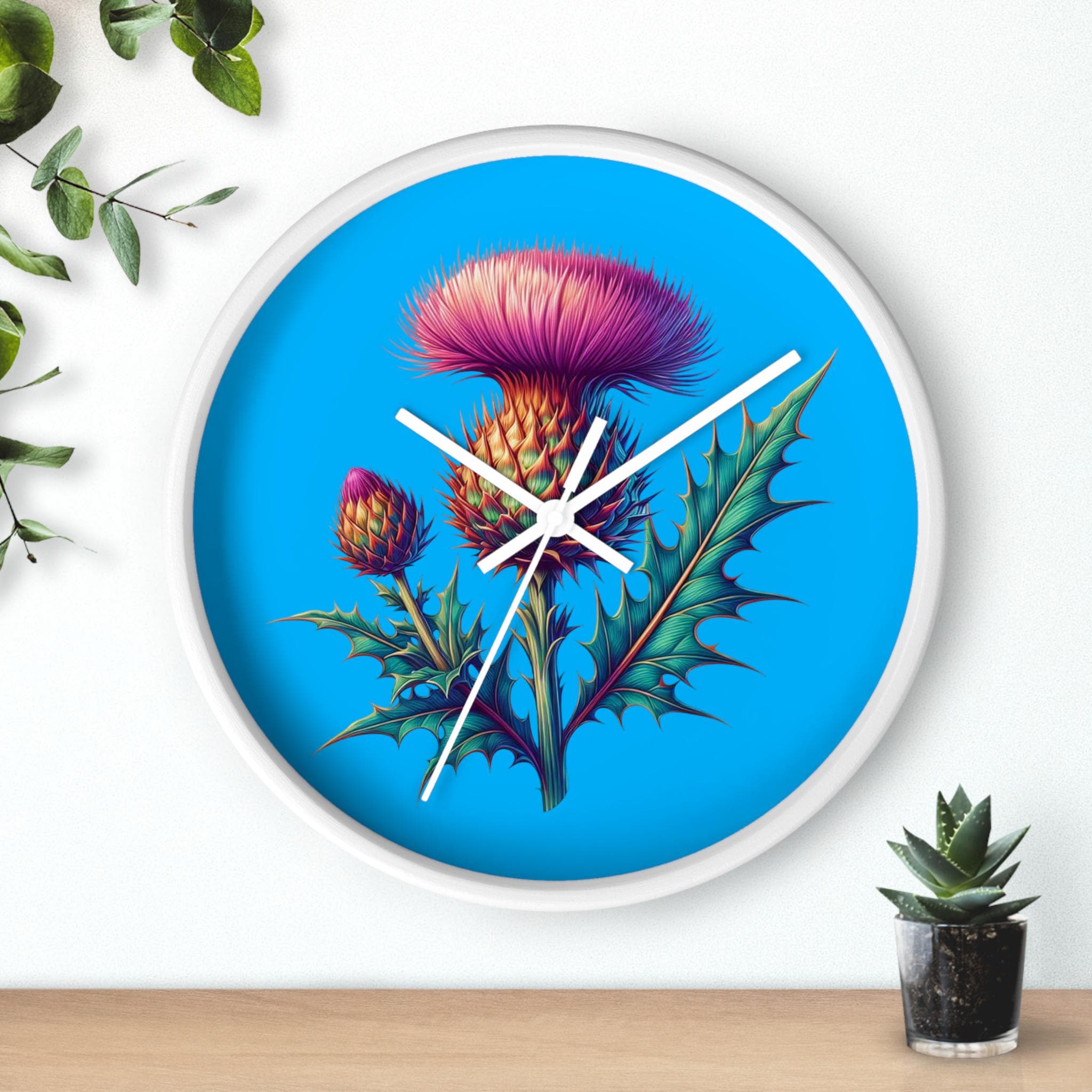 Featuring Scotland’s iconic national emblem, the Scottish Thistle, this striking wall clock is available with either a classic “Scottish blue” or a clean white background. Both designs highlight the timeless beauty of the Thistle while bringing a touch of Scottish spirit to your home decor.