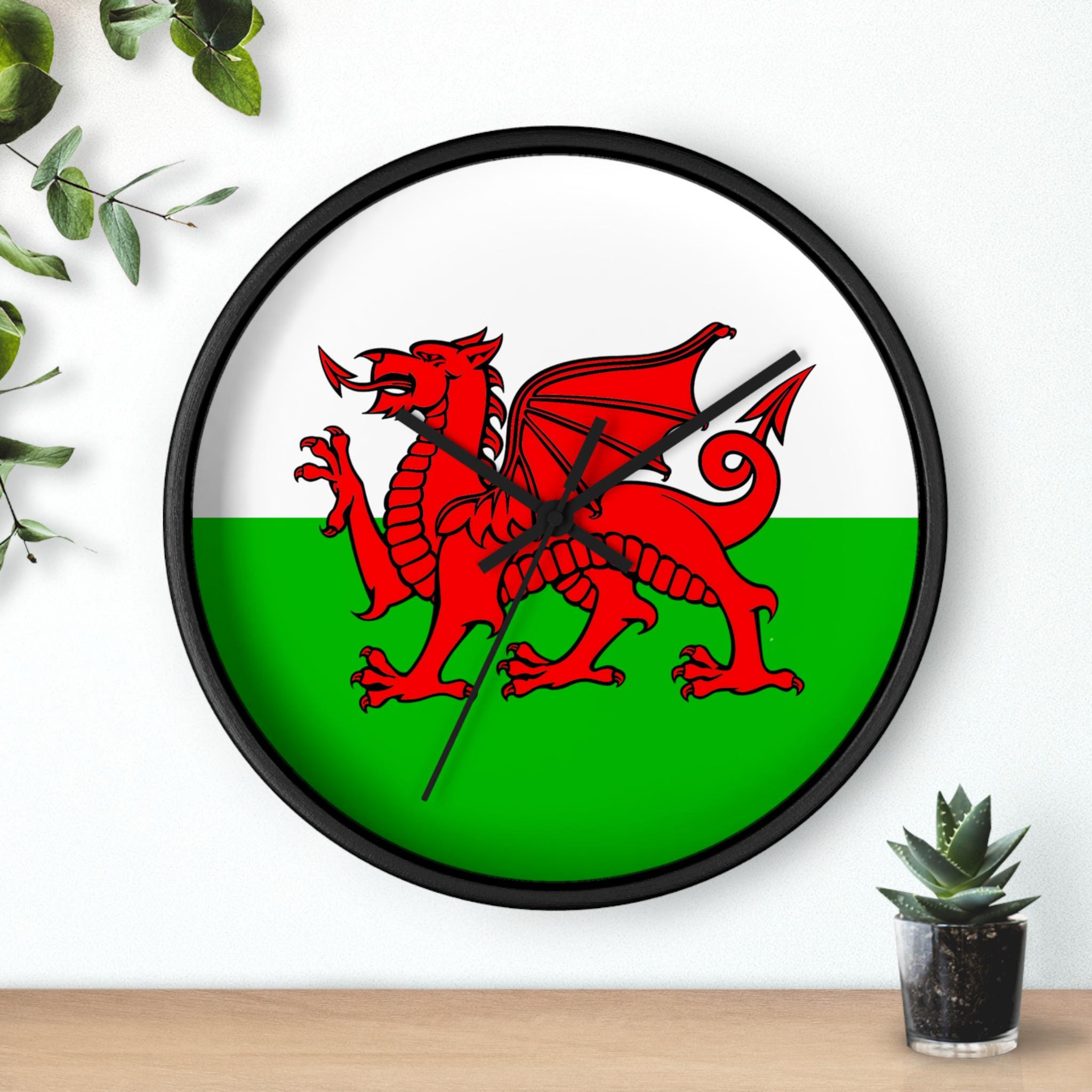 Display your Welsh pride with our stunning Welsh Flag Wall Clock featuring Y Ddraig Goch, the iconic red dragon of Wales.