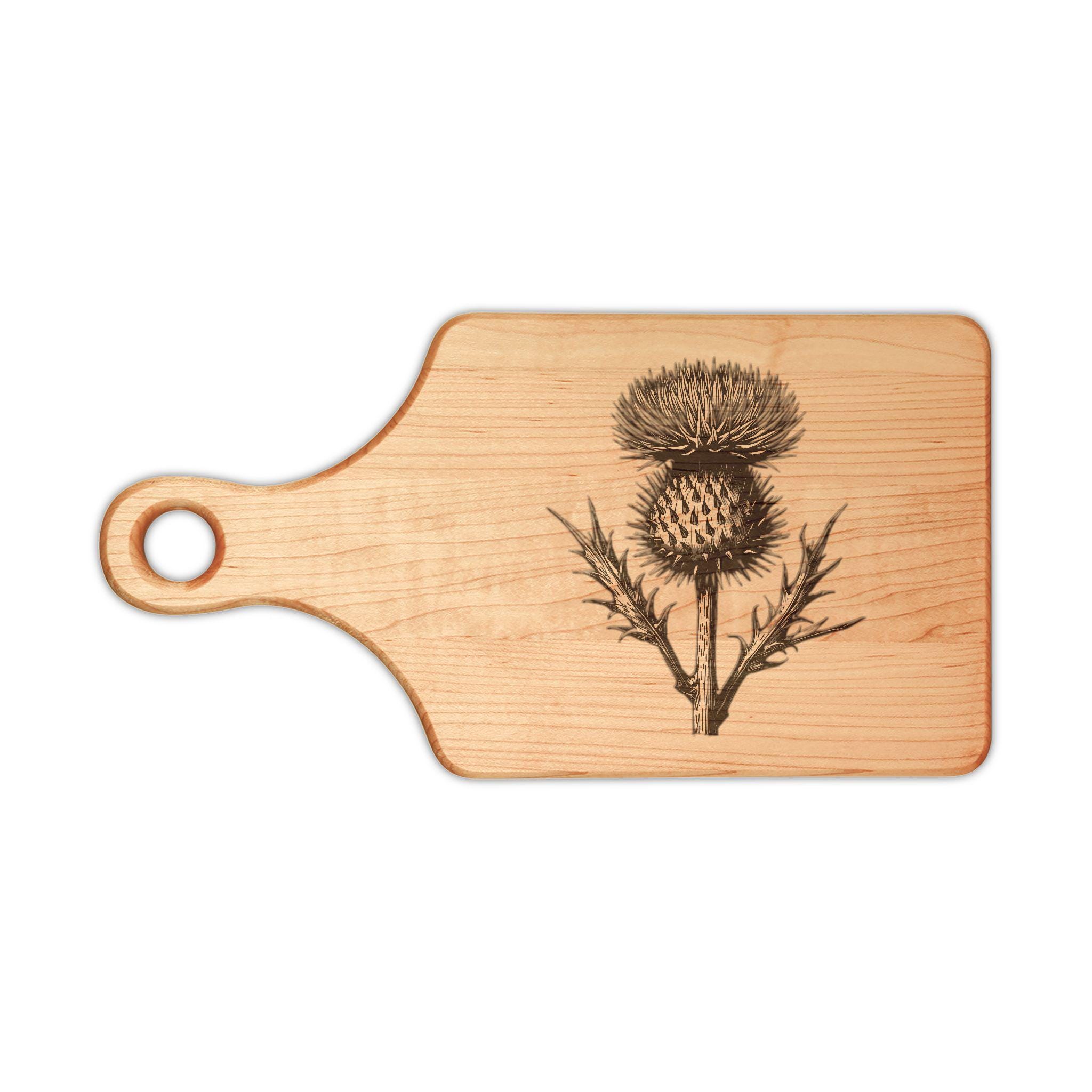 Celebrate Scotland and your pride in heritage with this beautifully crafted engraved maple cutting board. Made from premium maple wood, this elegant board features the iconic Scottish Thistle, a symbol of courage, resilience, and enduring strength that has represented Scotland for centuries. Revered in Scottish history and folklore, the thistle embodies national pride and the spirit of perseverance, making it a meaningful emblem for your home or a cherished gift for loved ones.
